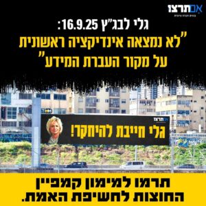 גלי לבג"ץ ב-16.9.25: "לא נמצאה אינדיקציה ראשונית על מקור העברת המידע" גלי חייבת להיחקר! תרמו למאבק לחשיפת האמת על גלי