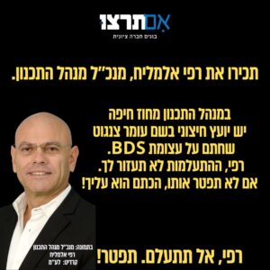 המייל שנשלח ב29/07/2025 18:10:36 מר אלמליח – פטר את תומך ה-BDS לאלתר!