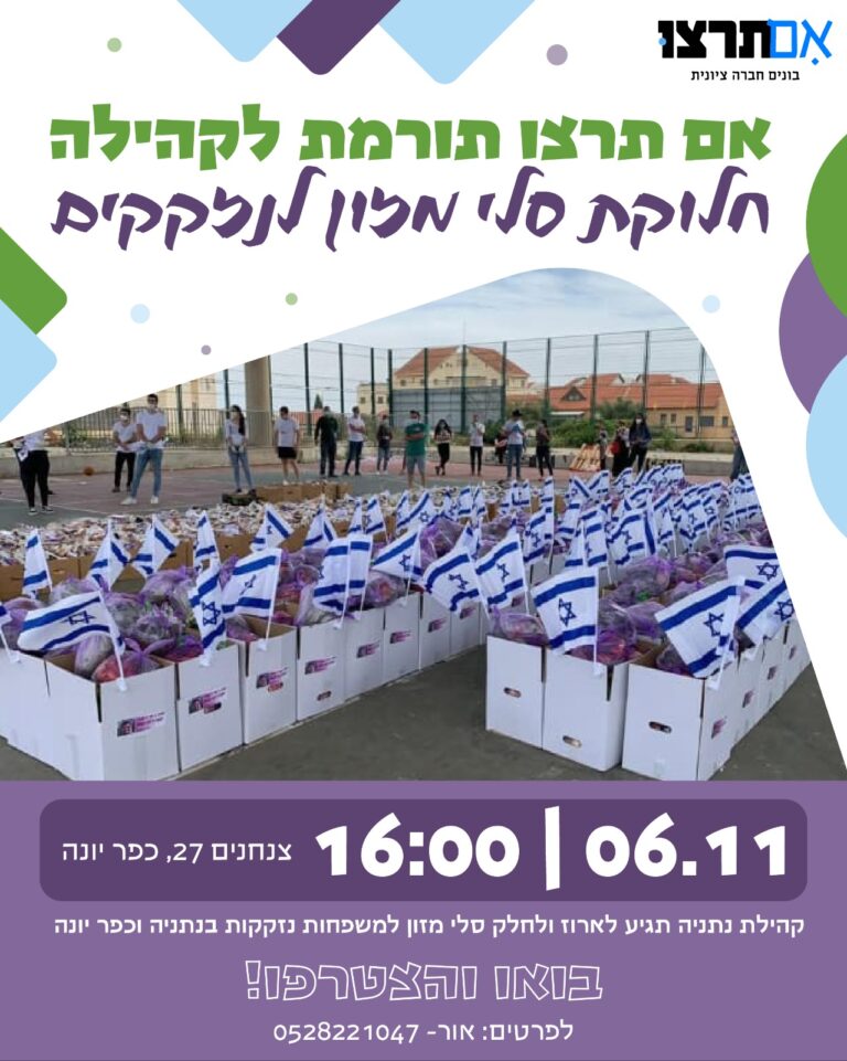 קהילת נתניה תגיע לארוז ולחלק סלי מזון למשפחות נזקקות בנתניה וכפר יונה