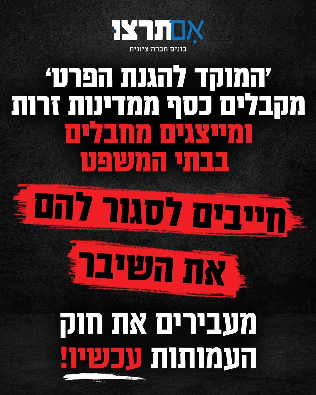 כדי לעצור את ההתערבות הזרה ולהעביר את "חוק העמותות"