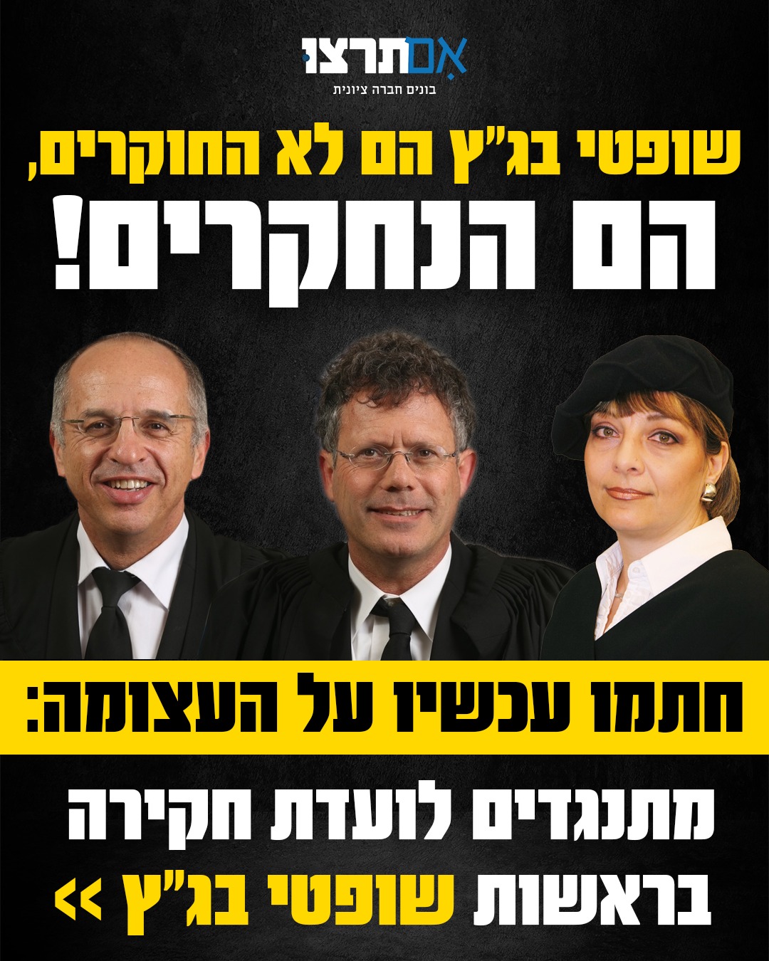 הגיע הזמן ששופטי בג"ץ יבינו שהעם לא איתם.
